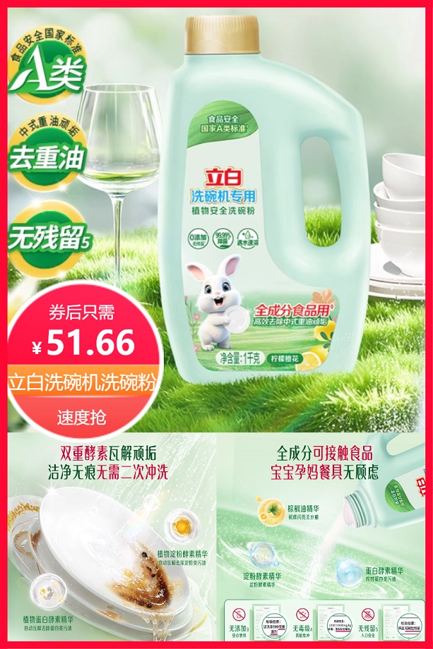 【超级立减7.5元+券12元+点击右上角三个点进入淘金币省3.74元后约51.66元】宝宝餐具安心洗,0添加,无残留,无毒级,食品用,青竹精华,去腥净味,祛除淀粉类污渍,蛋白类污渍,有效抗水垢,高效去油,保护餐具!