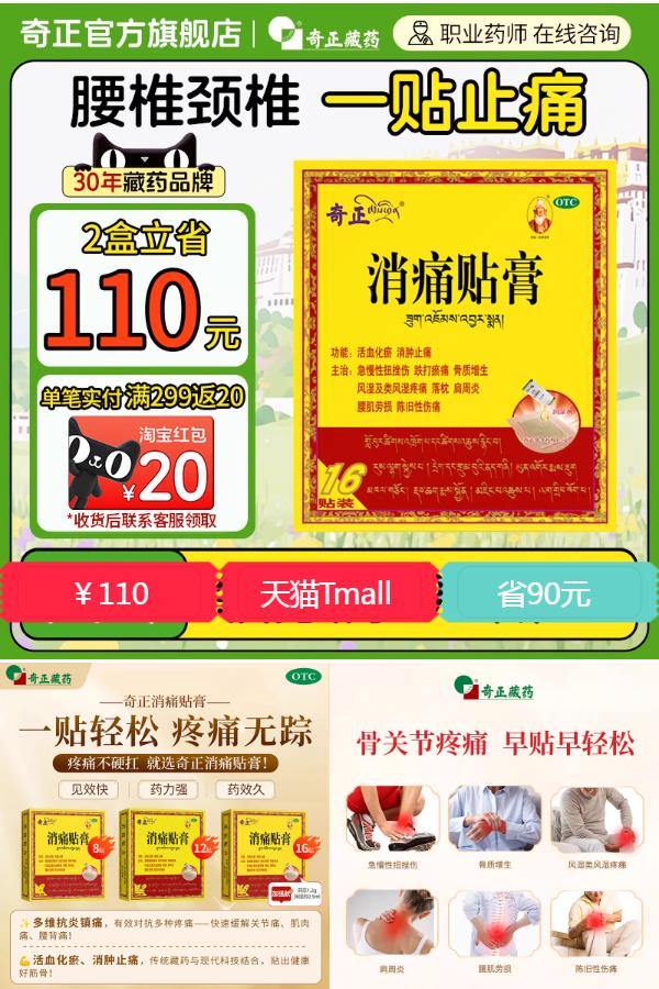 源自西藏千年藏药配方,奇正消痛贴膏16贴,深层渗透缓解肩周炎、腰肌劳损及风湿不适,温和不刺激~110元享旗舰店正品保障!买即赠使用指南+穴位图,性价比之选,家庭常备更安心~让藏药智慧守护你的日常行动力!
