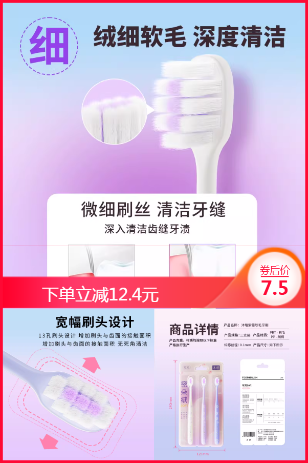 紫霞宽头软毛牙刷,3支家庭装7.5元!食品级硅胶软毛+加宽刷头,温和清洁不伤龈,月子期、产后、敏感人群安心用,19.9元享3支!告别频繁更换,高性价比护齿之选!