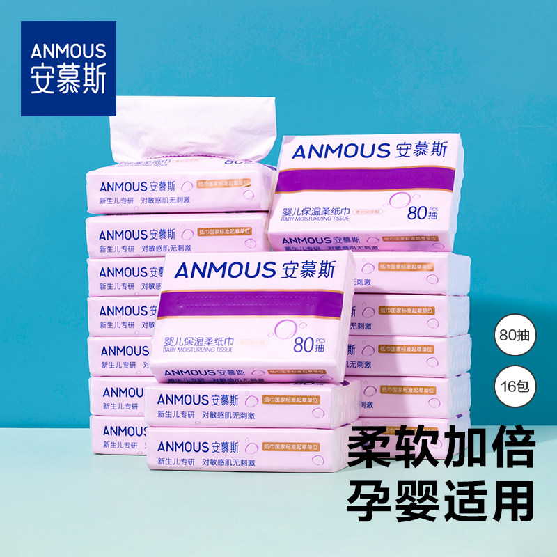 安慕斯婴儿保湿云柔巾乳霜柔纸巾新生儿宝宝儿童专用抽纸80抽16包
