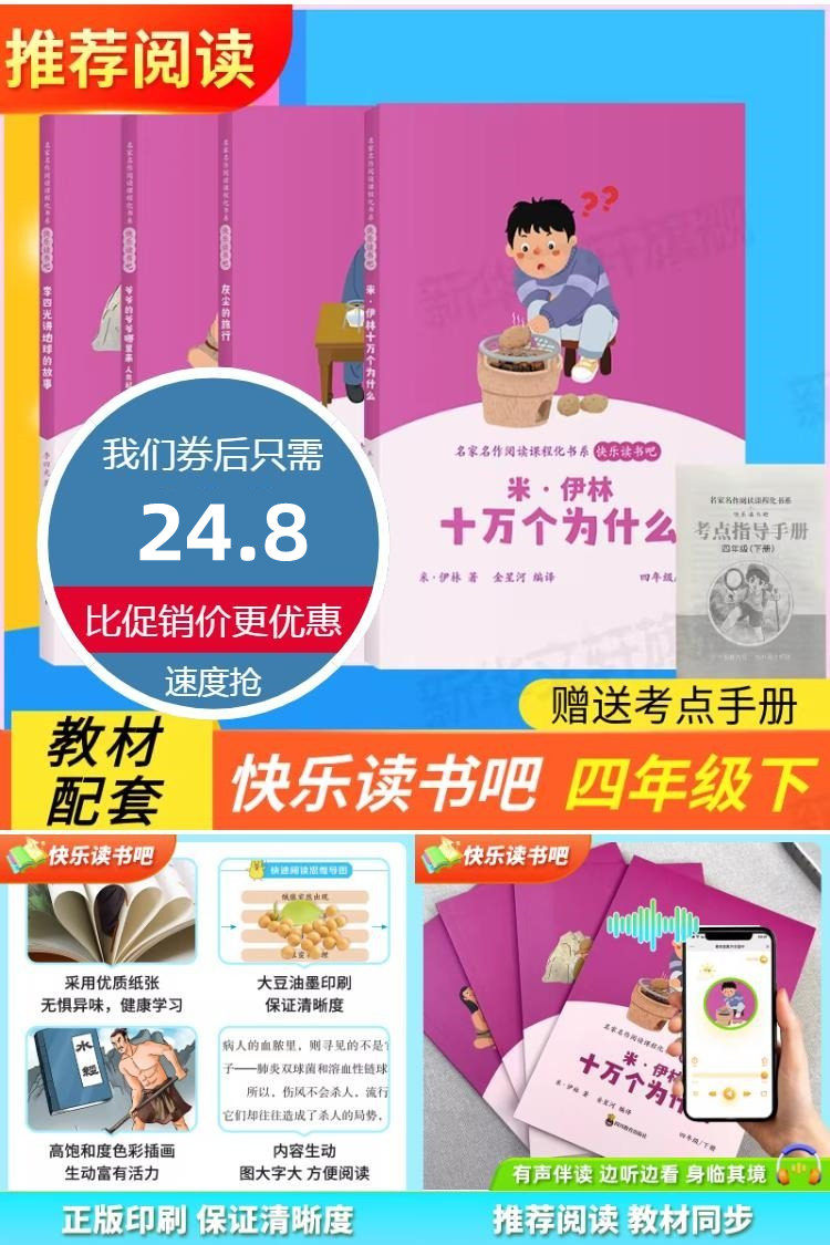 【赠考点手册】快乐读书吧四年级下全4册,人民教育出版社出版,配合教材同步阅读,阅读指导,掌握重点,彩绘插画,内容生动,拓宽孩子阅读面,护眼纸印刷,无异味,老师推荐小学生必备课外阅读书籍!