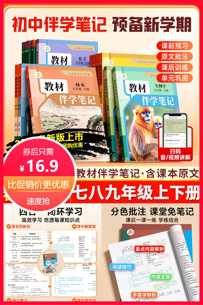 七八九各科齐全!寒假提前预习神器!人教北师版全覆盖,数学計算攻略 + 作文素材积累,知识点框架梳理,轻松掌握考點,多平台可查看随时随地学习辅助!