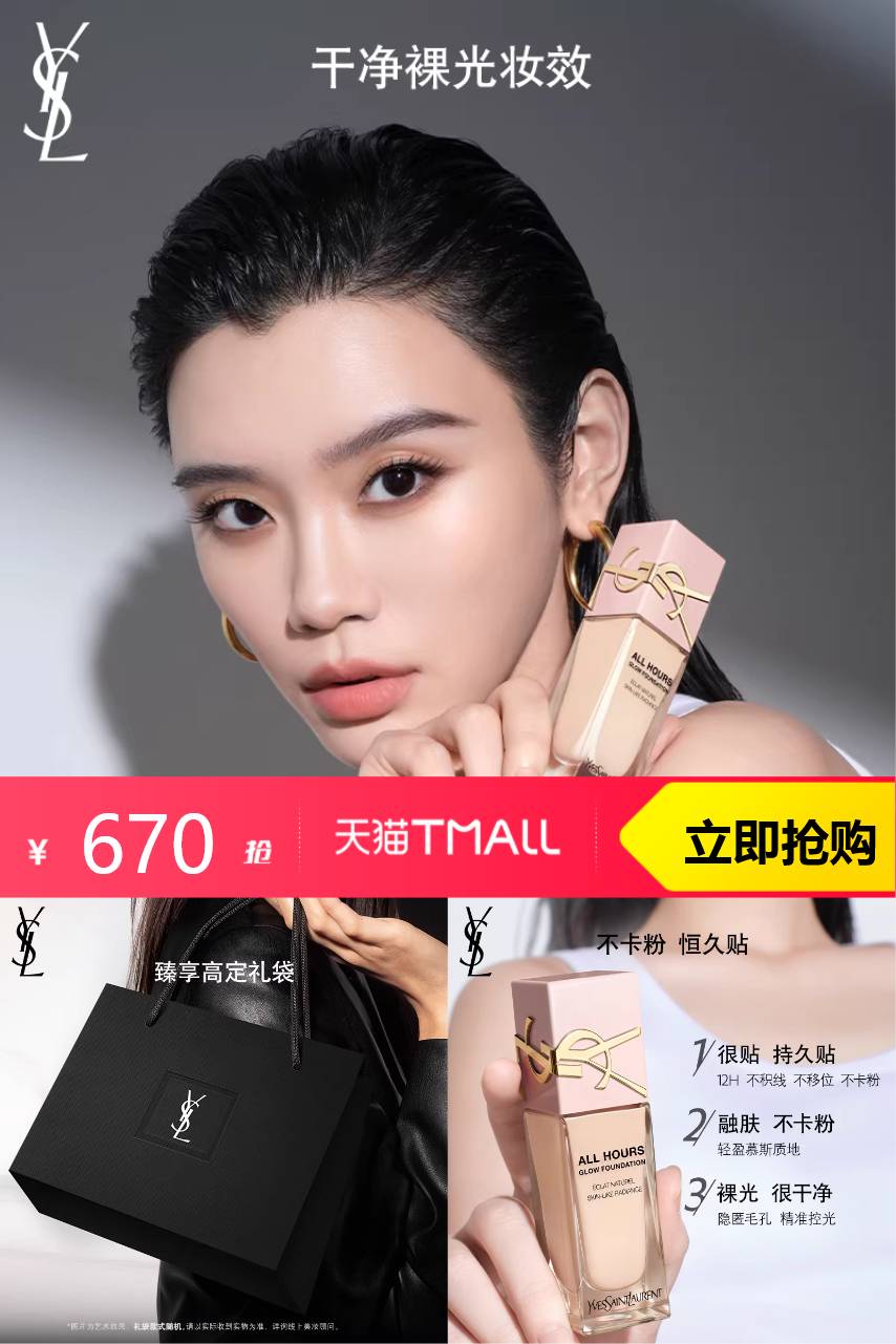 【【1】美妆惊喜券500-40,淘金币抵扣20.1,消费券480-60,到手549.9;【2】赠全新粉底+妆前乳】美妆惊喜券500-40,淘金币抵扣20.1,消费券480-60,到手549.9; 【2】赠mini气垫,圣罗兰贴肤衣粉底液秋冬滋润礼物,品质优选~