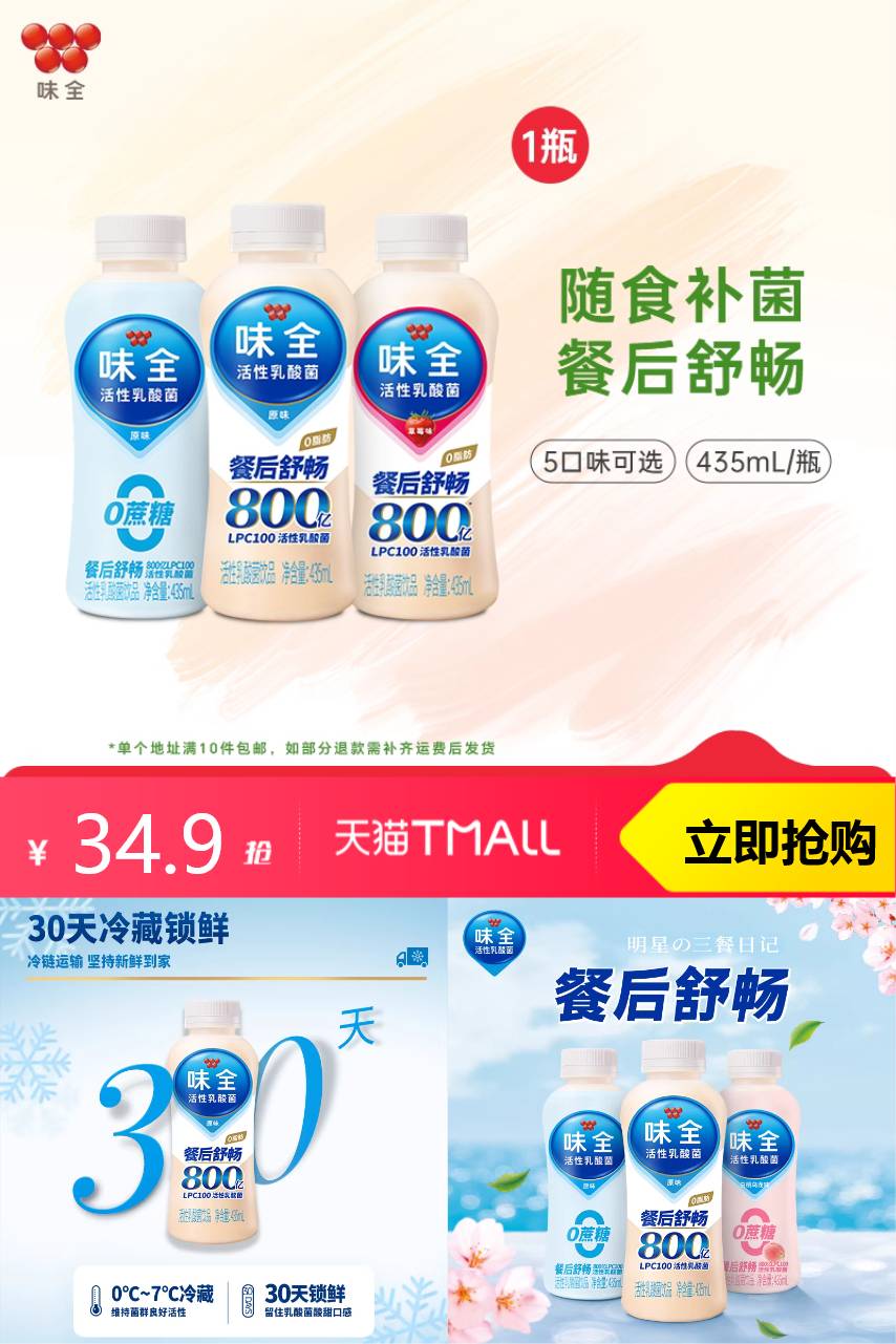 【淘金币可抵扣2.92元,到手价格31.98】 ✅5种口味随心配 原味、草莓、芦荟、0蔗糖、白桃乌龙 酸甜清爽,冰镇后更好喝! ✅肠道轻松+解腻解渴 活菌加持,饭后一瓶超舒服~ 清爽不腻,一口唤醒食欲!