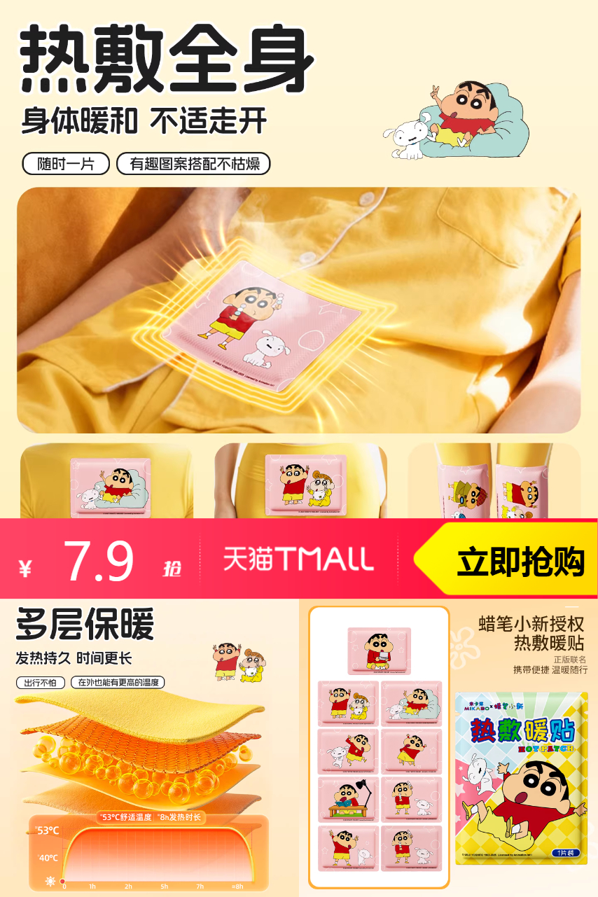 【天降12-16号 早上10点开始】米卡博蜡笔小新暖贴30片,26年专注发热技术,专利产品,安全可靠,持续发热,驱寒暖冬,55度恒温恰到好处,暖儿不烫,舒适热敷,层层深入!
