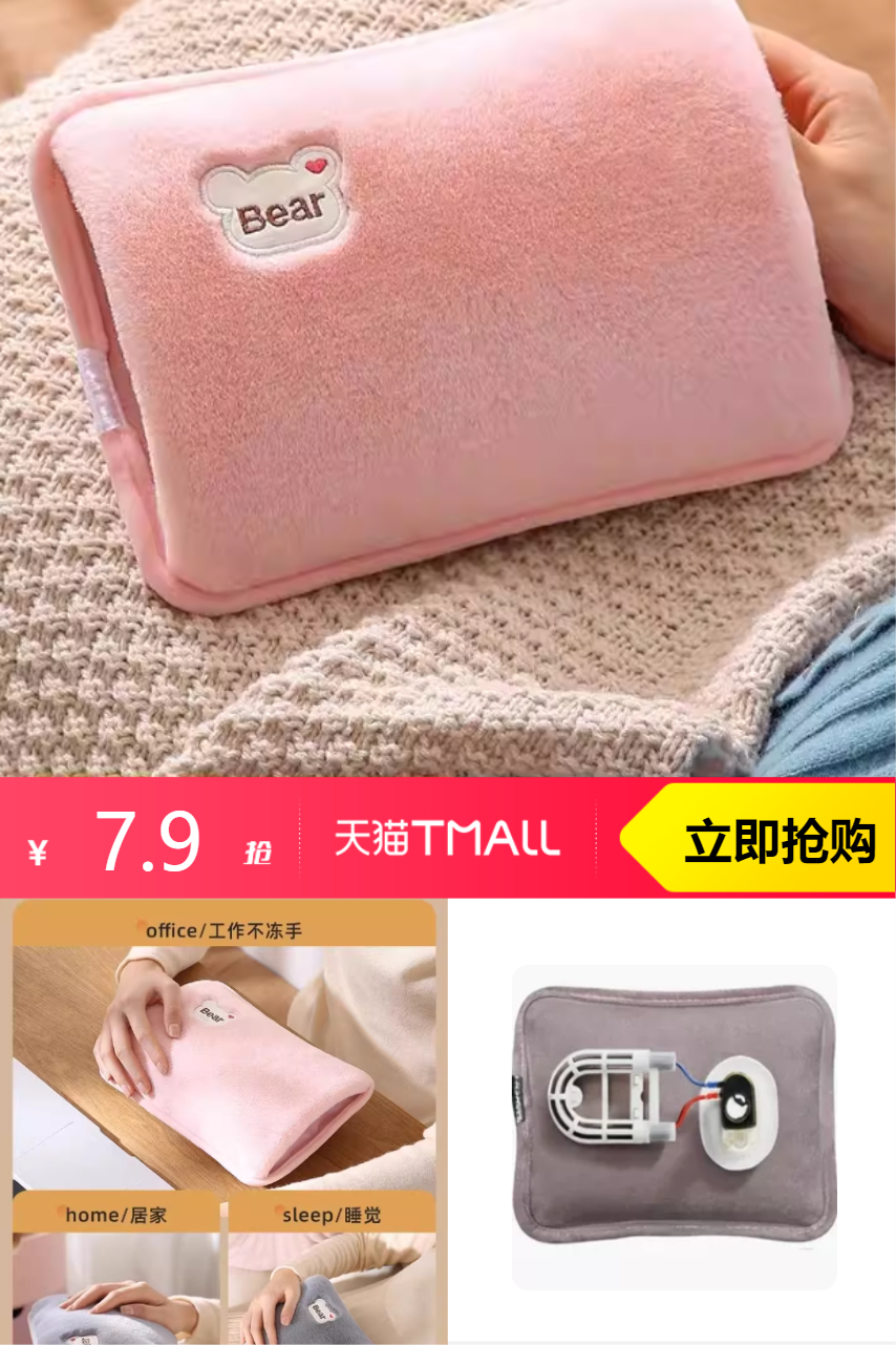 兔毛绒充电热水袋免拆洗,懂你的温度,十分钟快速充满。