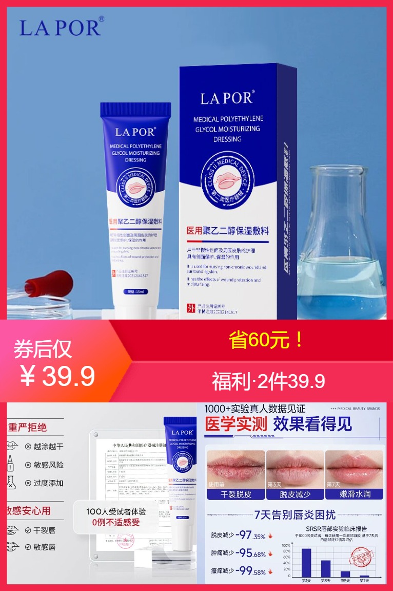 院线级聚乙二醇保湿敷料!!比妆字号的还要牛! ✔深层补水✔修复唇肌✔淡纹亮唇✔预防干裂 唇部问题反反复复都有可能是屏障受损!姐妹们千万不要忽视啊[抓狂]