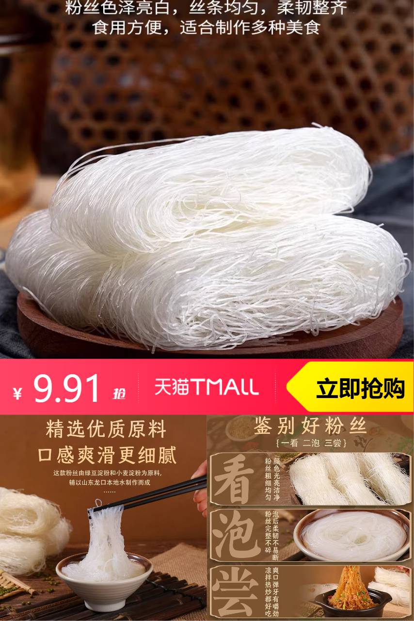 【叠加淘金币减0.35,到手价9.56元。】家家用的到粉丝!!晶莹剔透,耐煮不易烂,口感纯正劲道丝滑,软糯劲道!!!
