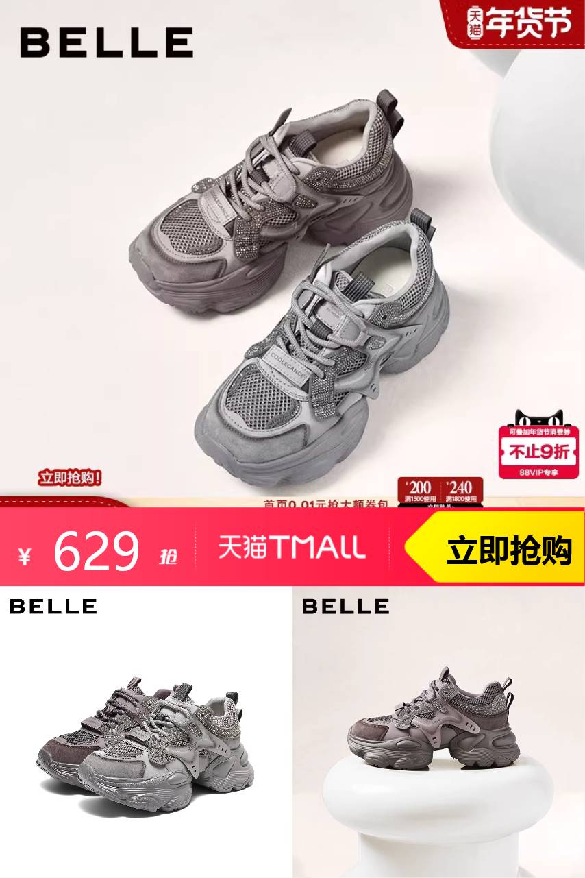 【领90券+淘金币+消费券到手424.5】百丽女鞋子机能风灰色老爹鞋,轻量化发泡底,打破老爹鞋笨重偏见,轻盈脚感,暴走不累,厚底商场新款增高休闲运动鞋~~