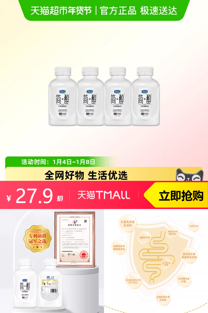 【活动价68.9-官方立减34-7淘客券-88vip1.4-淘金币2.68,猫超直播间可领取199-20品类券,还凑消费券200-25,到手17.87四瓶,折算4.4一大瓶】健康的味蕾体验,它都有!四盒430g装,一次性满足你的口感与健康。
