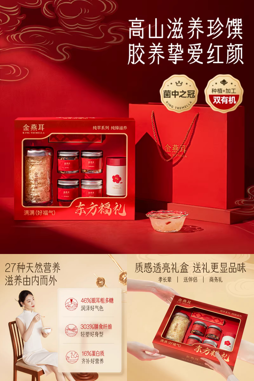 【商超活动都要399~现会员到手193】【金燕耳大牌70g+送5件到手6件装年货礼盒】质感透亮礼盒送礼更显品质送亲戚送长辈送朋友营养健康好礼有面,含专用焖烧杯,定制量勺,和生态有机本草银耳,营养价值超越野生银耳,滋补中草药培养营养升级。破壁低温烘干更易吸收。
