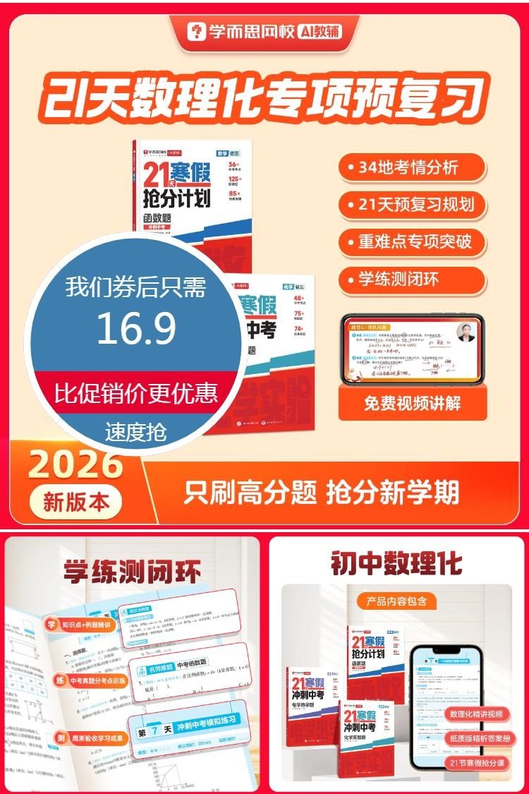 【免费视频讲解】学而思新版21天寒假抢分计划,34地考情分析,21天预复习规划,重难点专项突破,学练测闭环,只刷高分题,抢分新学期!