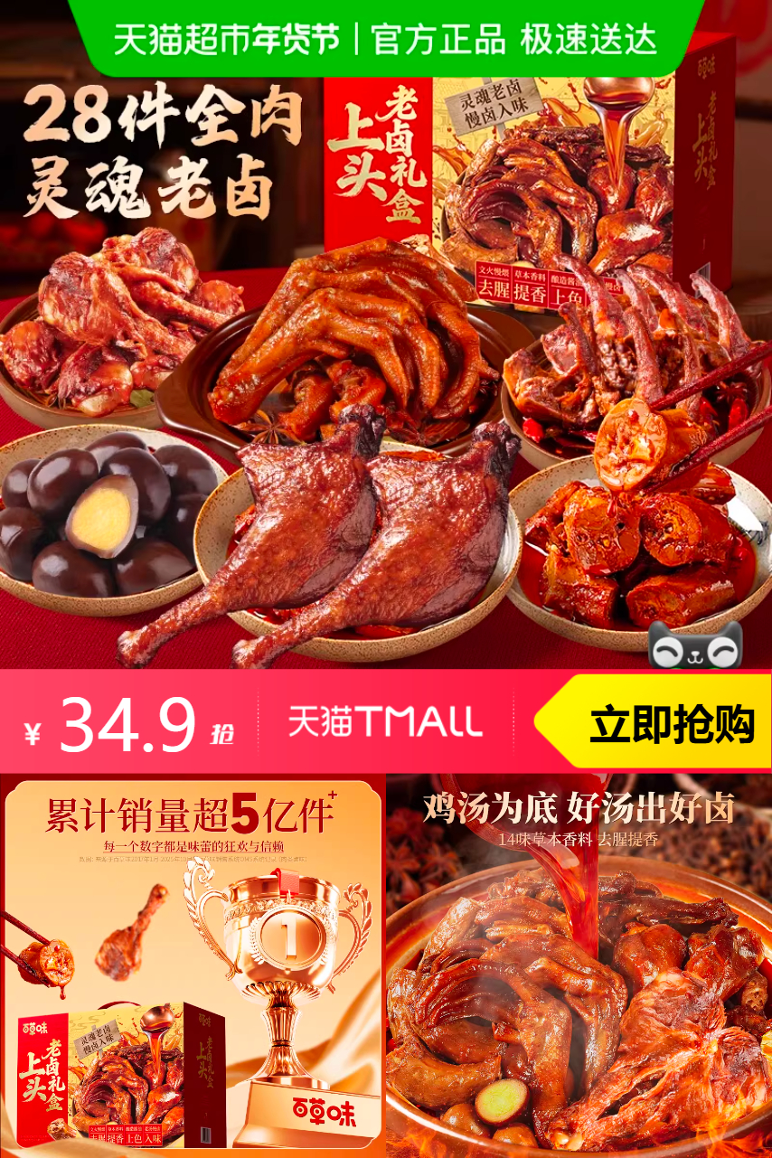 【原价59.9-立减20-淘客券5-88vip1.75-淘金币4.59-价到礼金1.39=27.17,叠88VIP年货节消费券200-25,到手23.71】辣卤秘制配方,让你回味无穷,上头不止一点点~