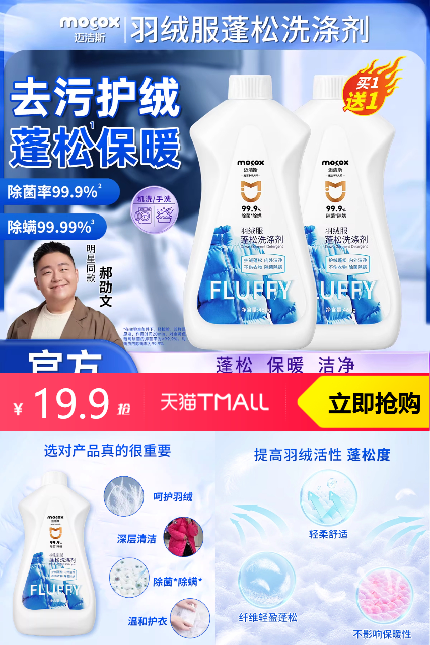 【淘金币0.7,到手19.2,叠消费券200-25,到手16.88】迈洁斯清洗剂,您的羽绒服冬季清洁专家!不论是家中的日常使用还是店铺的需求,都值得一试!