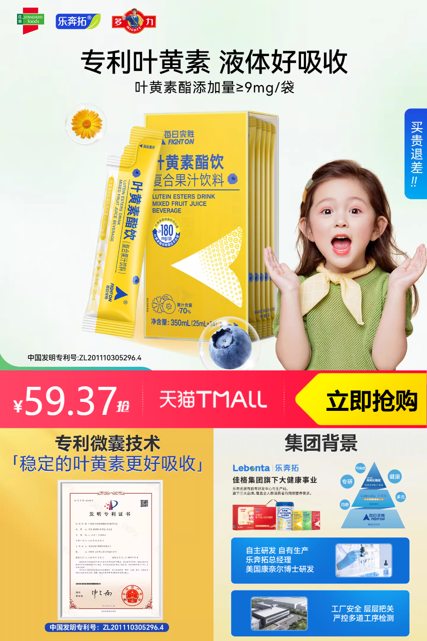 【满100减5,立减优惠·34,官方立减17,淘金币抵扣23.63,满200减25消费券减7.29,到手价52.08】每日完胜专利蓝莓叶黄素1盒,品质优选~