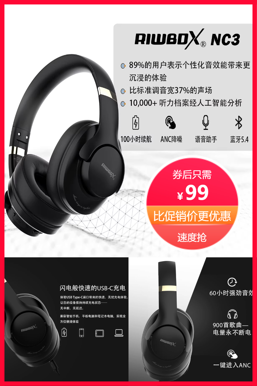 超强升级版!【买就送tpc充电线+音频线】100h超长续航,轻量化设计,0压迫感,强劲大动圈!!劲爆音浪!!带你还原声音的透彻音质!ANC主动降噪功能,颜值担当【售后无忧+365超长质保】