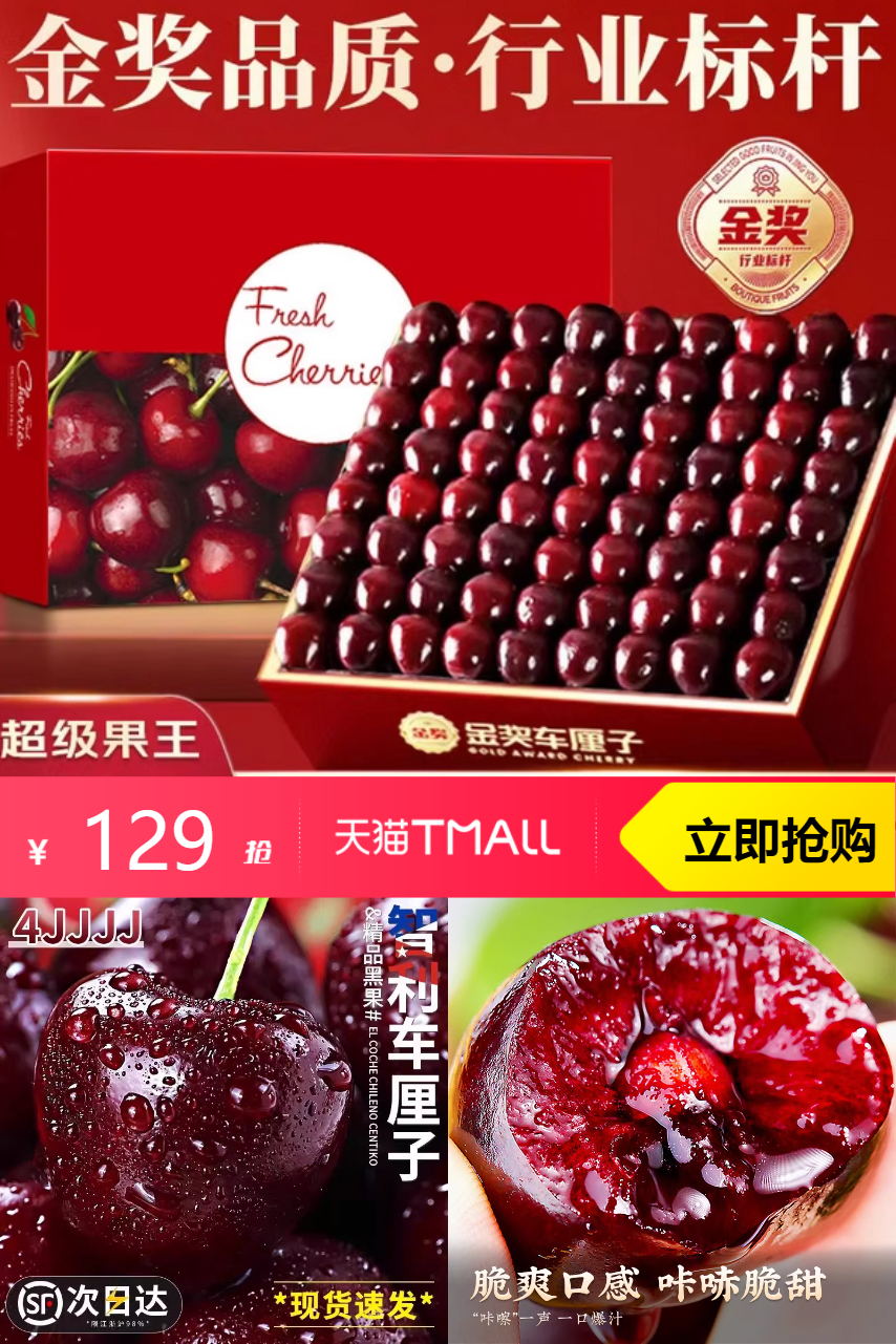 【淘金币抵扣6,到手123,凑单到手107.67左右到手3j/5斤】进口智利现货车厘子5斤装礼盒3j顺丰包邮,无论口感还是颜值,一度成为年货C位水果!