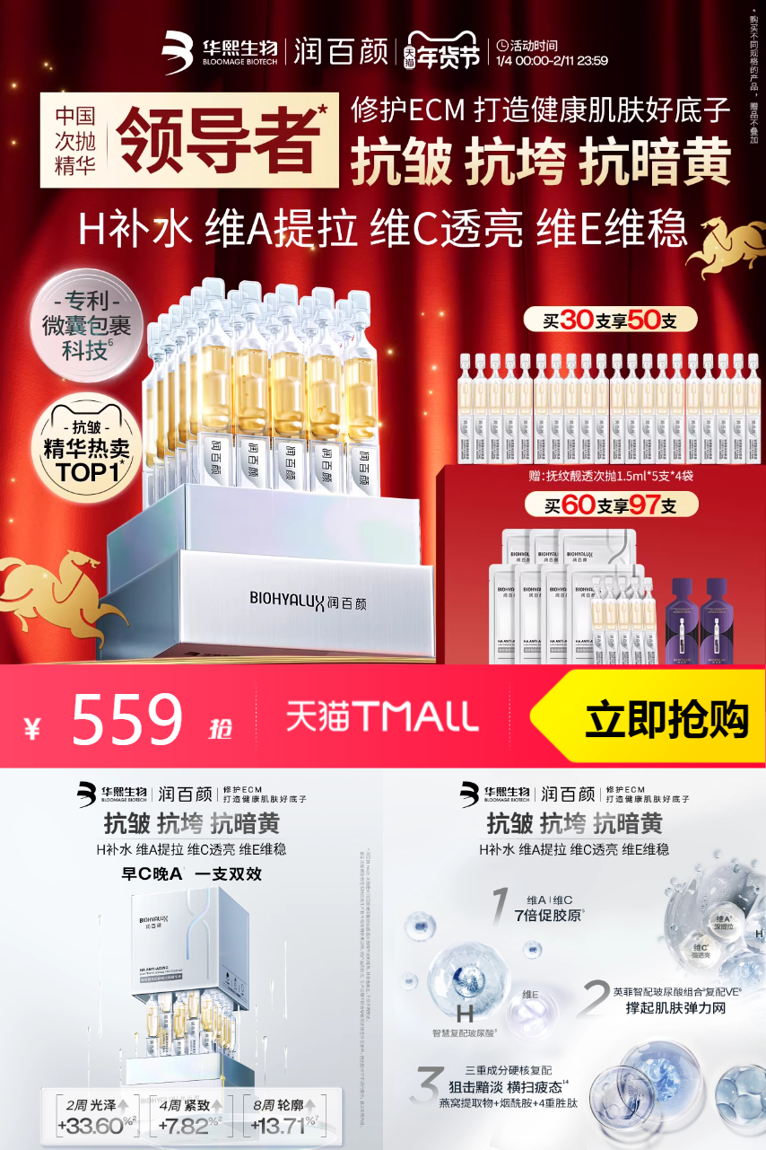 【1、金币抵扣45.54 2、消费券抵扣51 3、美妆惊喜券900-70 抵扣58.54 4、到手403,赠同款5支*7袋+小紫弹次抛2支,共97只,平均4.1/只】润百颜HACE精华液,轻松透亮肌肤!滋养加倍,美丽不打烊!HACE次抛精华,守护你的光泽。