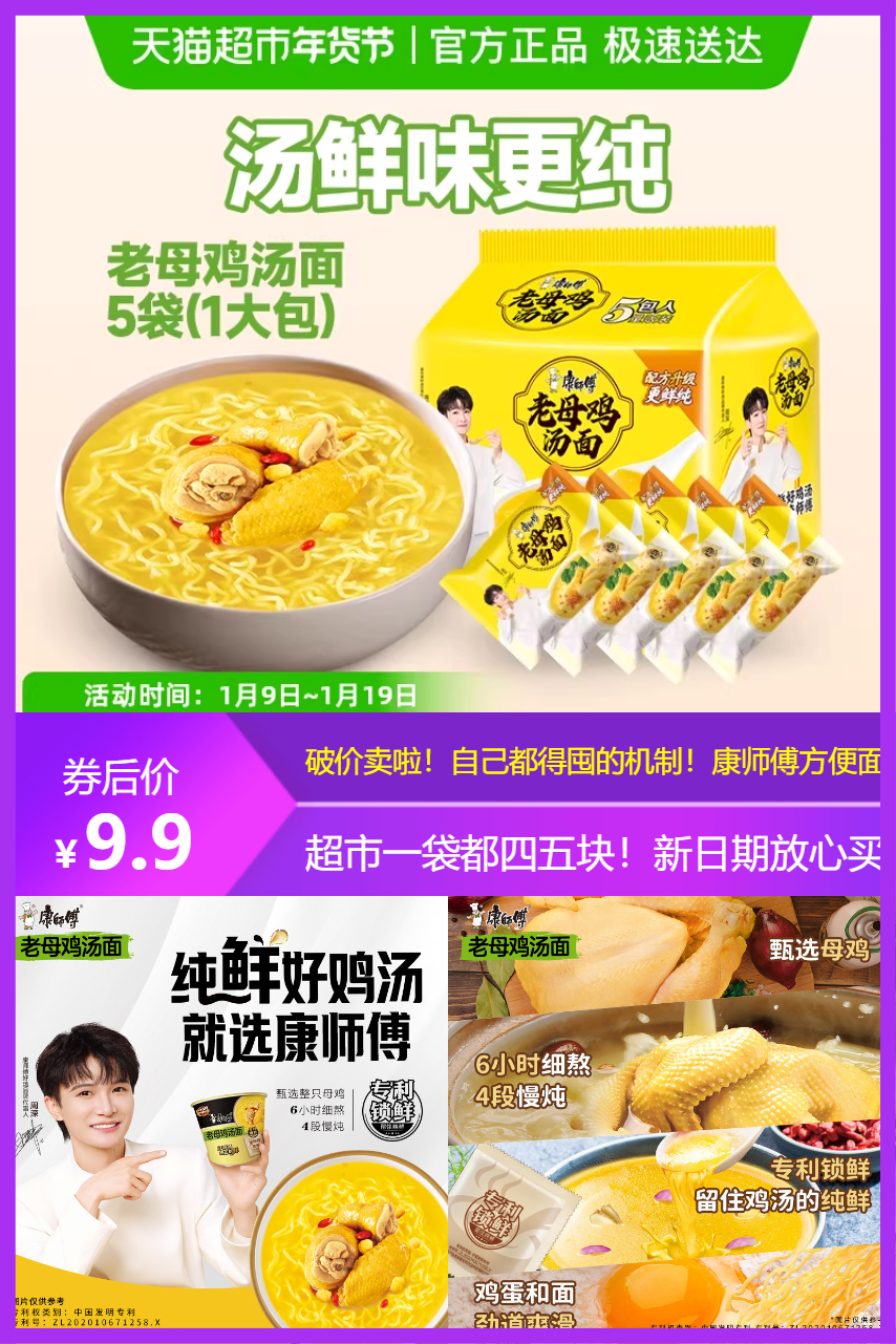 领券+88vip+限时红包1-2元(看账号1元是8.25 2是7.25)如果没红包的介意换个淘宝号试试!周深推荐,老母鸡汤面、真材实料,6小时细熬+4段慢炖,萃取高汤、纯美清润,汤鲜味更纯、就要这个汤!