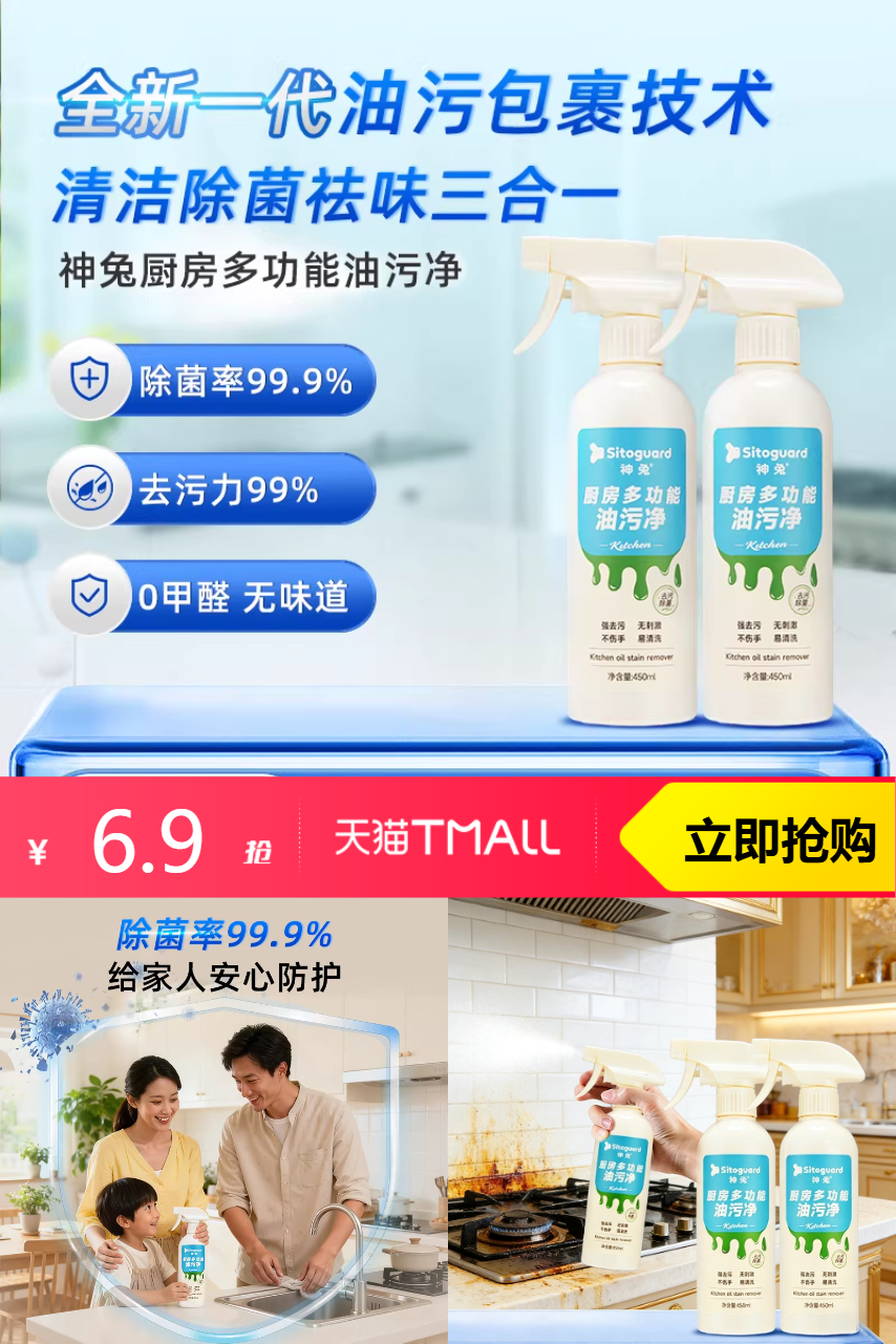 推荐:神兔抽烟机清洁剂去油污450ml
