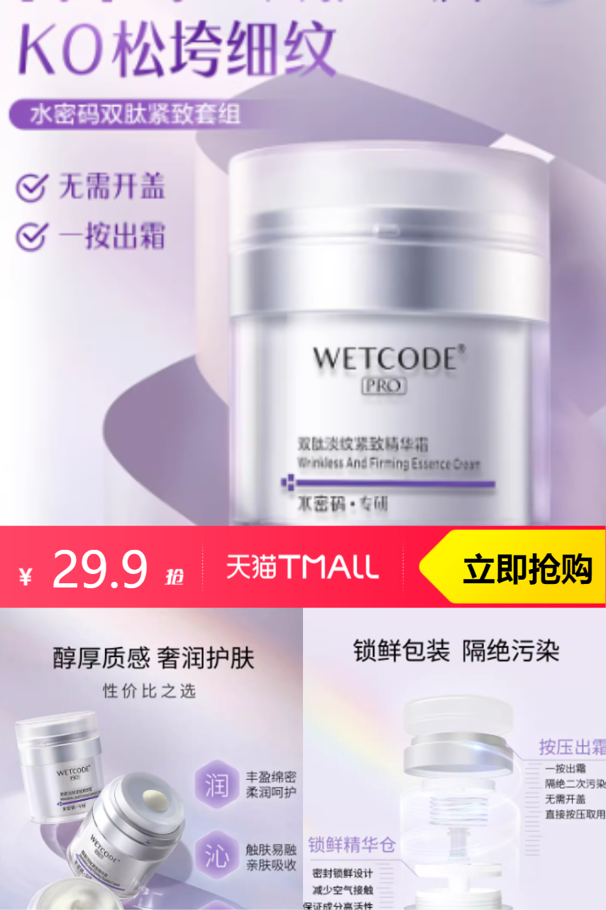 【官方立减13元。】三胜肽深层补水,肌肤水润无痕。保湿效果超乎想象,让肌肤更显年轻。细腻质地,轻松吸收,不油腻。