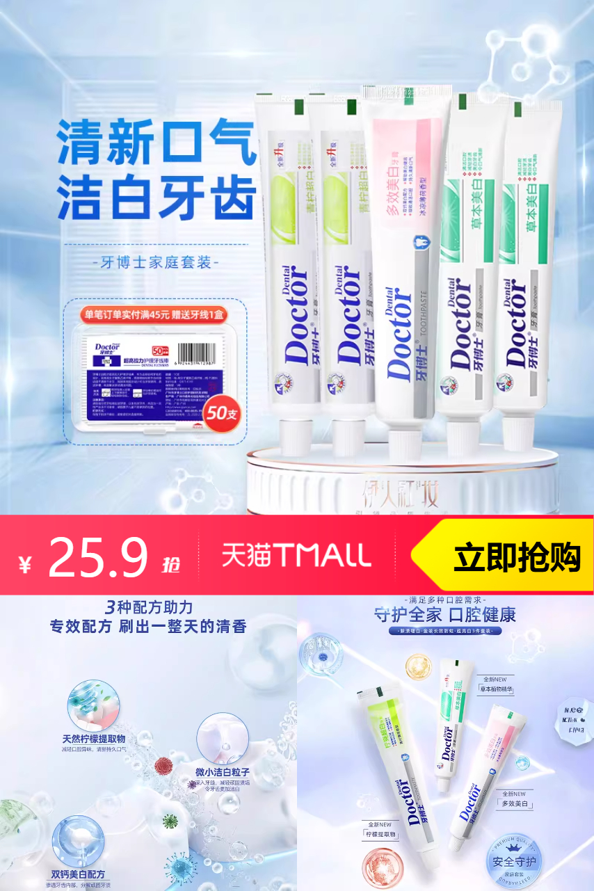 推荐:【5只】牙博士青柠超白多效美白草本牙膏
