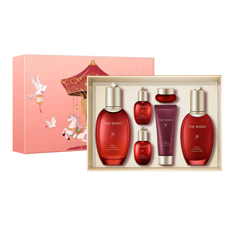 【赠精华水20ml*4+精华乳20ml*4+面霜4ml*4,有限时bt40元,叠消费券到手918】Whoo后津率享平颜润肤保湿水乳套装,密集保湿抗皱28天嘭弹细滑~