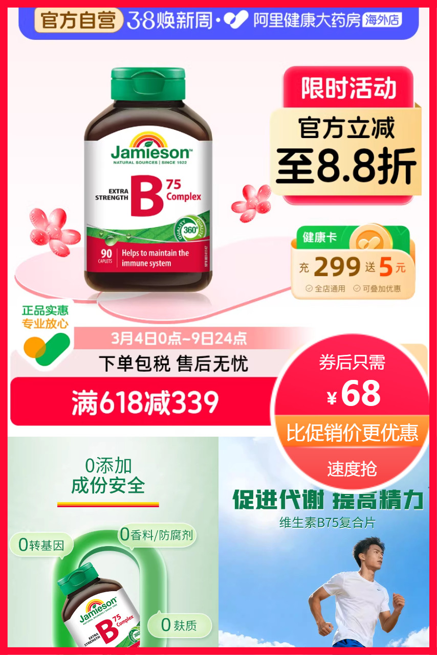 【首单+VIP+凑200-25品类券到手更优惠】健美生复合维生素B。健康甄选,防护不松懈!高含量,一次补充10种营养素!长效作用1天仅需1片,长达6--8小时的持续释放,均衡作用于人体!健美生复合维生素B群vb维生素B12b6维b生物素90粒肌醇熬夜常备!