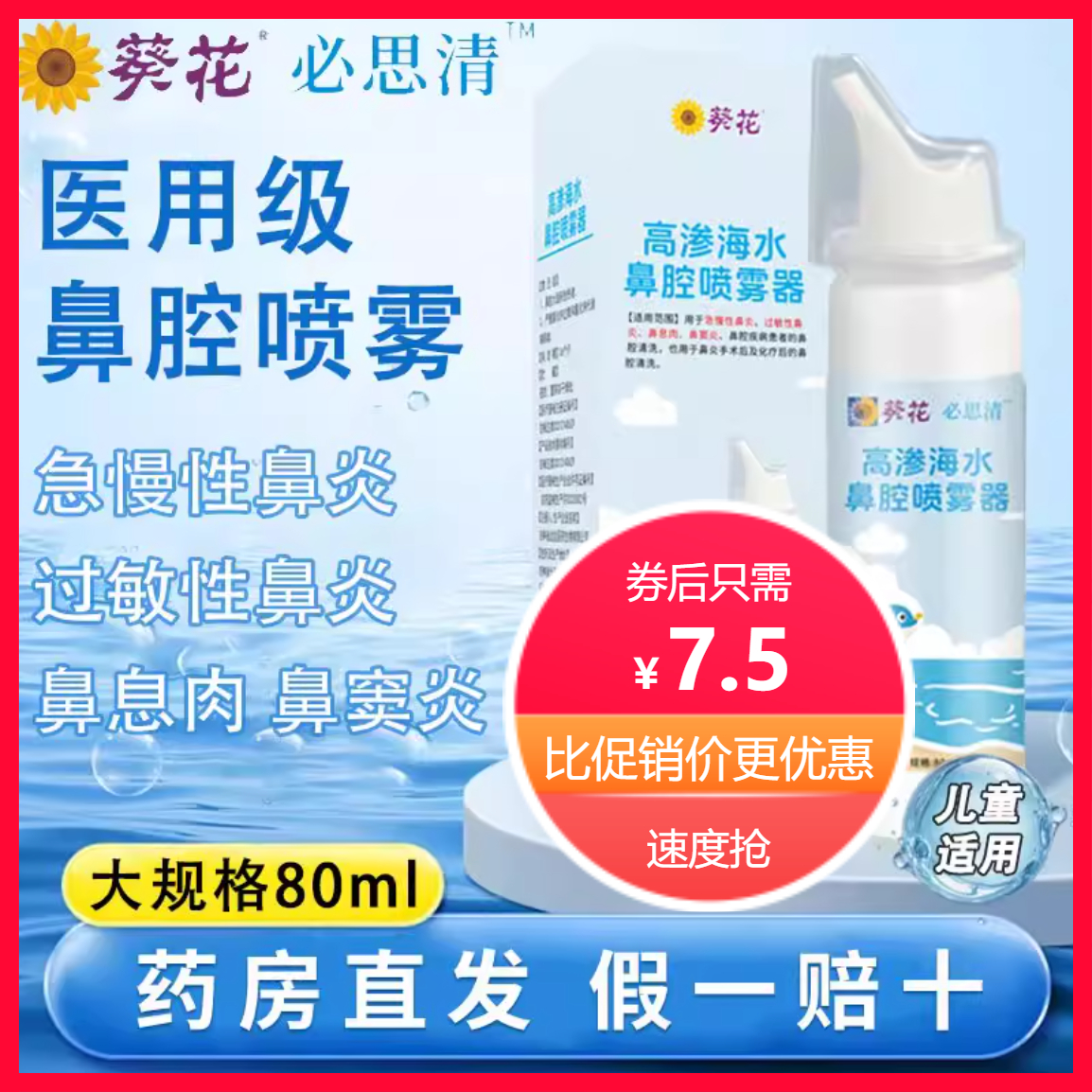 假一罚十!!!【到手7.5元】儿童洗鼻器/家用鼻腔冲洗鼻炎鼻塞,喷雾细腻,缓解鼻炎呵护鼻腔。鼻腔覆盖广,全面清洁鼻腔每一个角落!