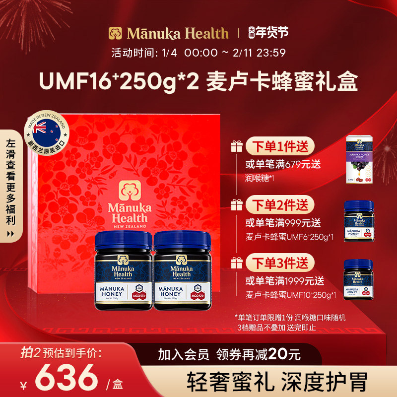 新西兰原产优质蜂蜜,富含活性成分,深度滋养,保护肠胃健康,适合节日、生日等各种场合赠送长辈。精致包装,送礼佳选。