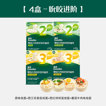 【到手4盒,实.符79.4亓】营养搭配助成长,多种口味组合,不添加食盐,钙铁锌营养全面,10cm帮助宝贝吞咽。给宝宝的,就要宝宝的标准,英氏,聪明妈妈的选择~