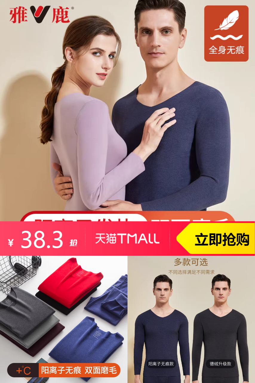 【淘金币抵扣1.5,到手38.3元】双面磨毛和羊毛蚕丝款一个价了,先撸羊毛蚕丝的!!雅鹿男士无痕,保暖又舒适。