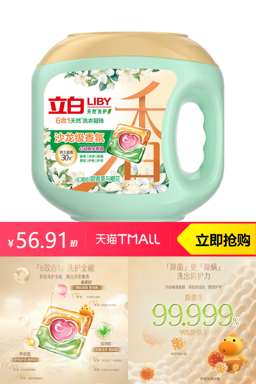 【1、拉大牌日红包直接到手56.91 2、限时红包3块 到手 53.91】 品质保证,立白沙龙珠,18颗精装,能量满满。