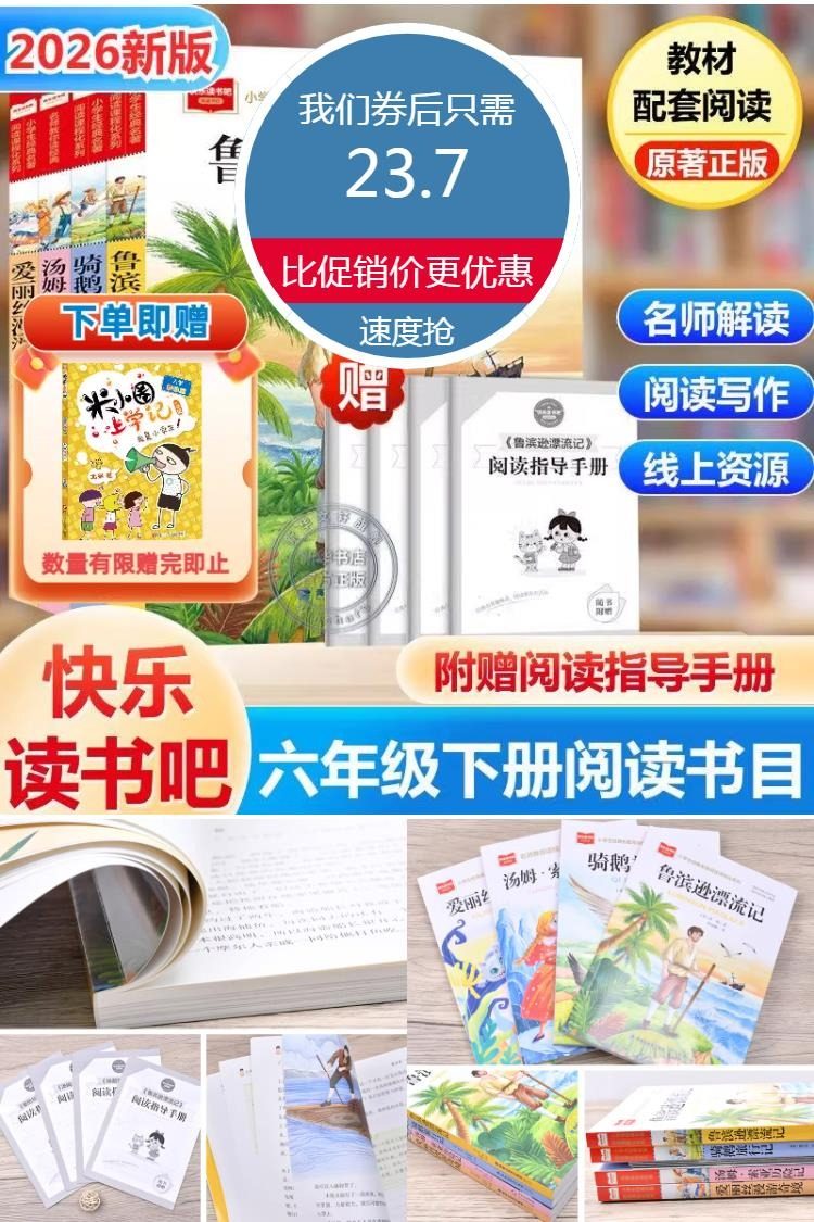【赠阅读手册+米小圈】快乐读书吧六年级下,名师专业阅读策略,帮助孩子深入理解,文中栏目精彩多样,拓展孩子知识视野,精美插图,丰富的线上学习资源,提供更丰富的阅读体验,小学寒假必读课外阅读书目!