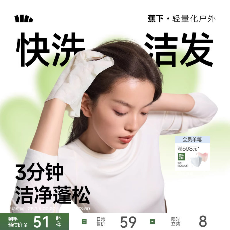 蕉下官方旗舰店推出的免洗洗发水,采用植萃成分,快速洁净,48小时蓬松,无需繁琐步骤,让您的头发保持清新亮丽。无论是日常清洁还是外出旅行,这款产品都是您的理想选择。