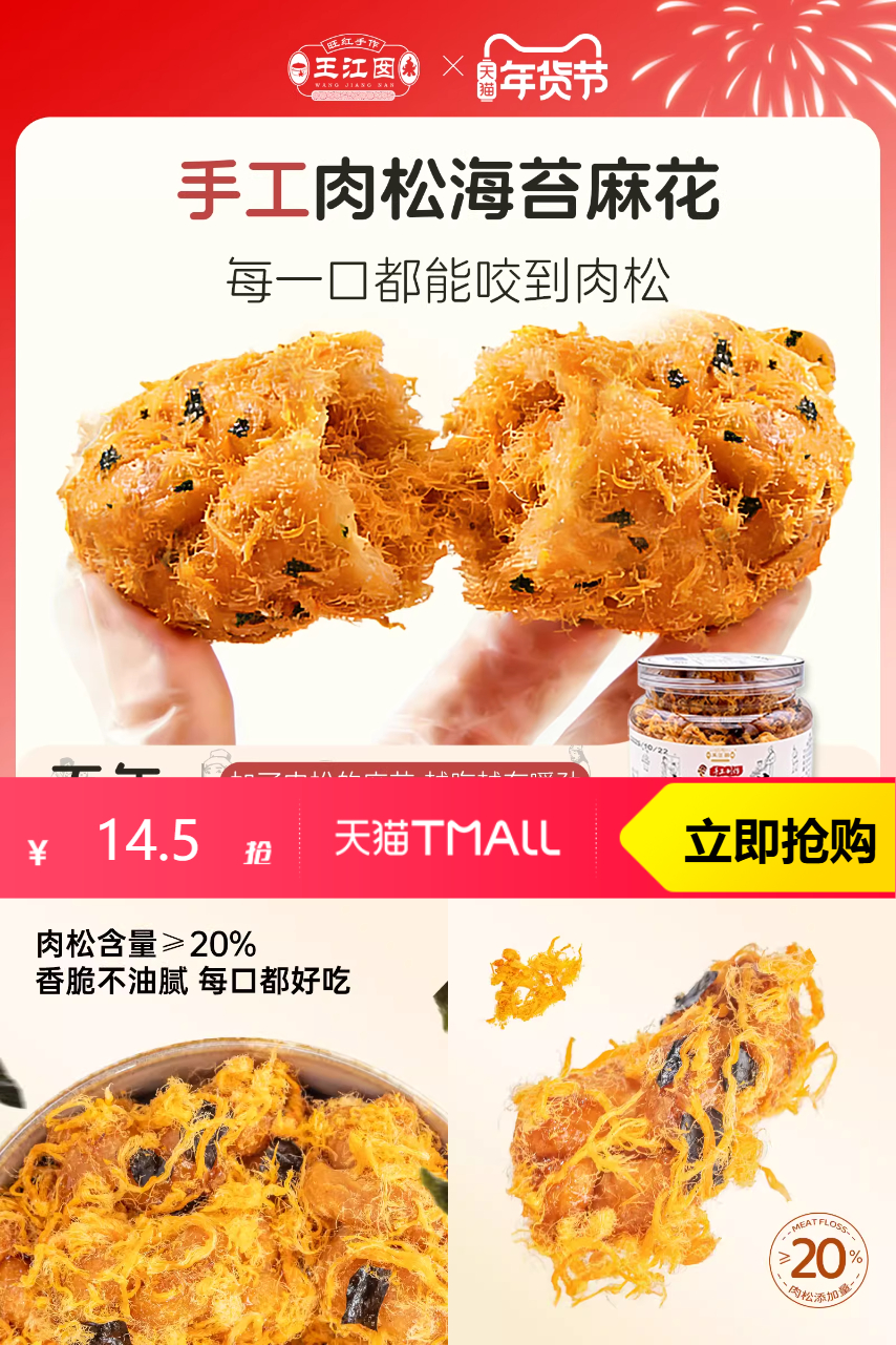 【原价29-优惠券2-立减12.5-淘金币0.6=到手13.9】王江囡肉松麻花罐装小零食210g,品质优选~