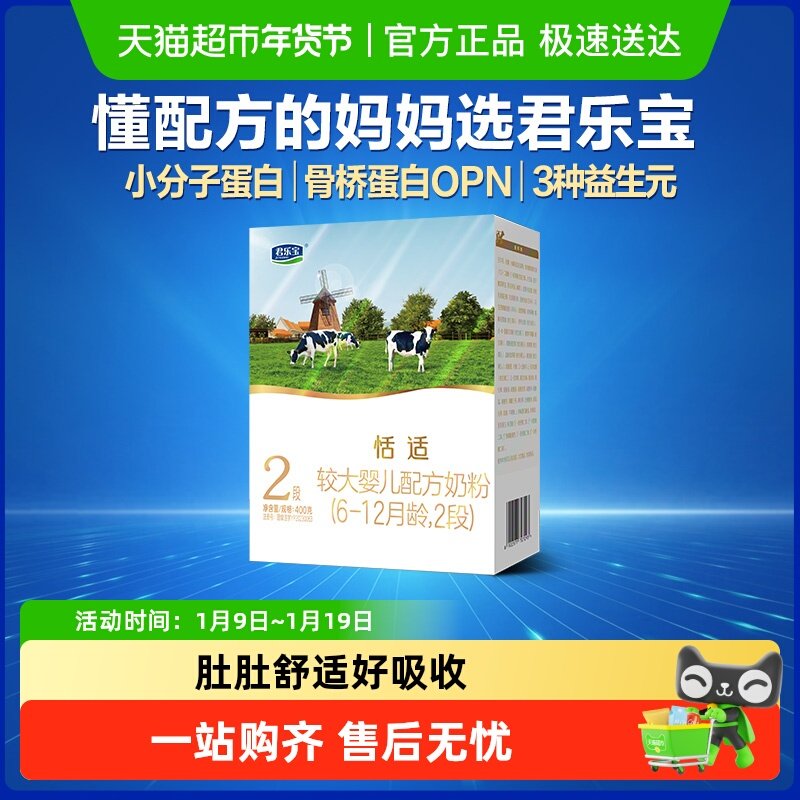 【高品质】君乐宝品牌,为孩子提供营养。适合6-12个月大的较大幼儿使用,确保健康成长。400克装,方便携带,随时随地享受健康美味。