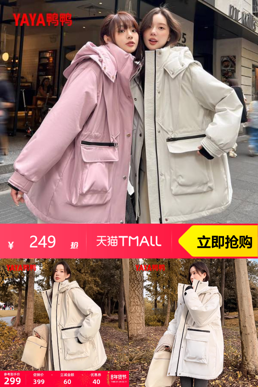 【官方立减60,淘金币抵扣11.97,消费券200-25,到手212.03】【风壳】鸭鸭白鹿同款羽绒服中长款外套,品质优选~