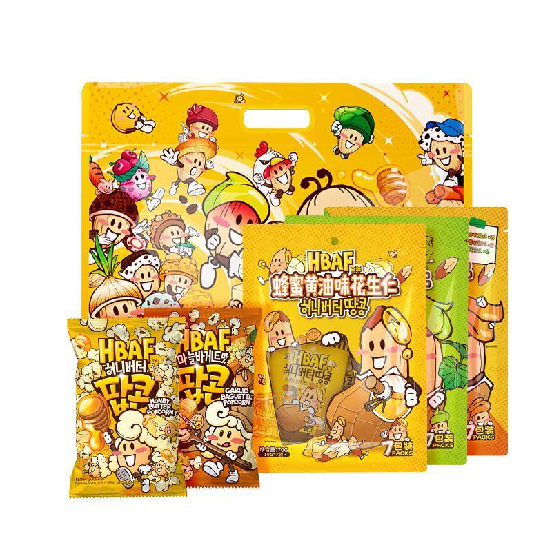 【精选坚果】芭蜂零食礼包,满足您对坚果的喜爱!爆米花、无壳花生、蜂蜜黄油味小吃一应俱全,让您在忙碌的工作之余也能享受到美食的乐趣。无论是送给孩子还是作为礼品,都是不错的选择。