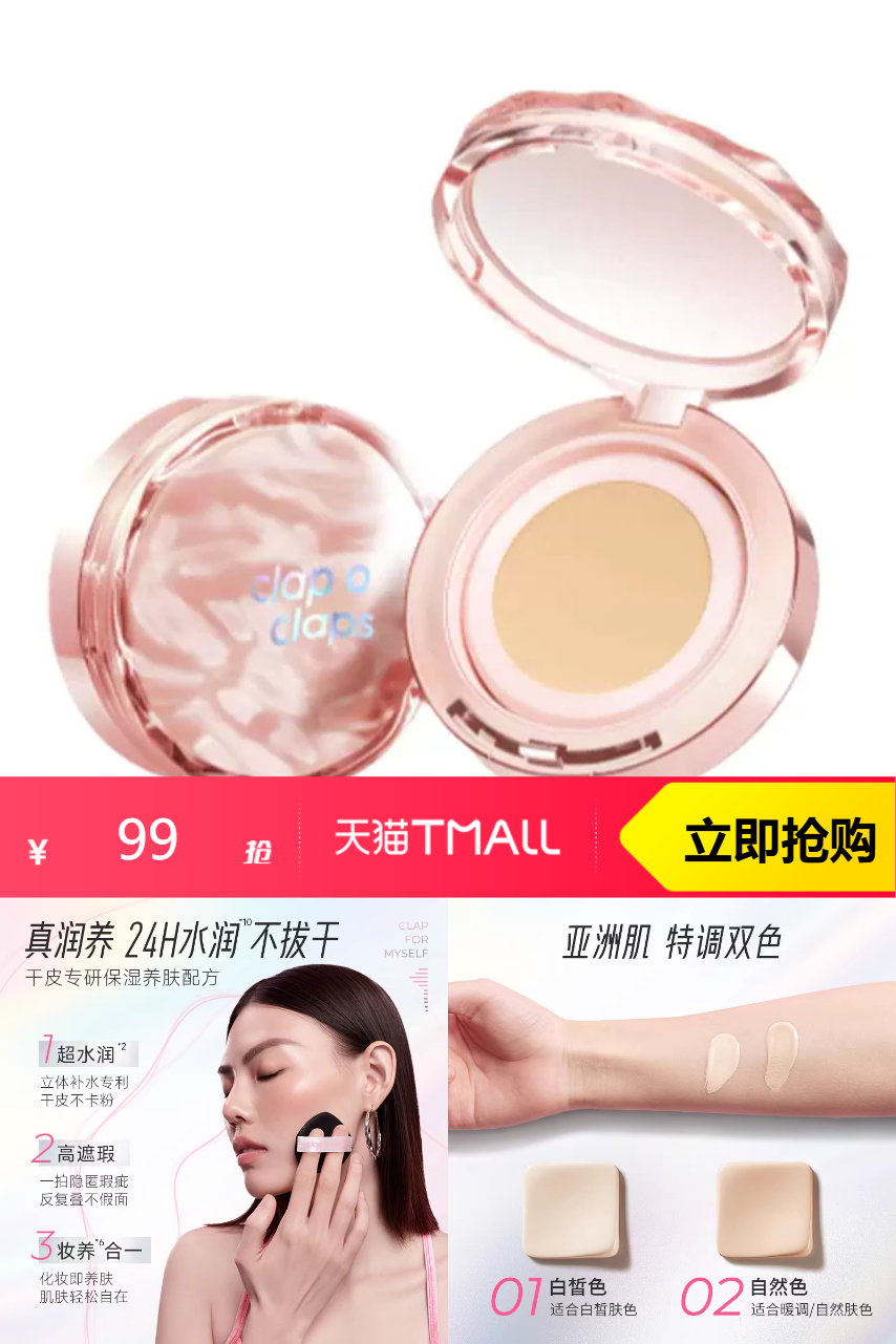 【原价124元-官方立减24-淘金币13.2元-回购(首单)礼金3-消费券10.11=到手72.69元】一拍水光24H无瑕持妆!上妆还能养肤!扒得牢遮得主大笑不卡纹!