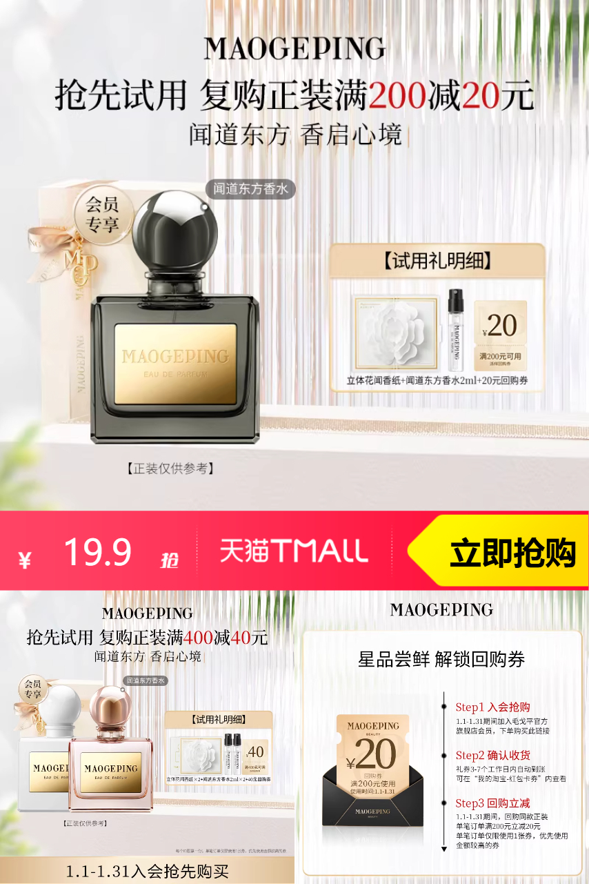 【原价19.9-淘金币0.59=到手19.31元。下单回购香水正装满200减20元【回购券】。到手香水小样2ml】毛戈平气蕴东方第六季闻道东方系列香水体验装!