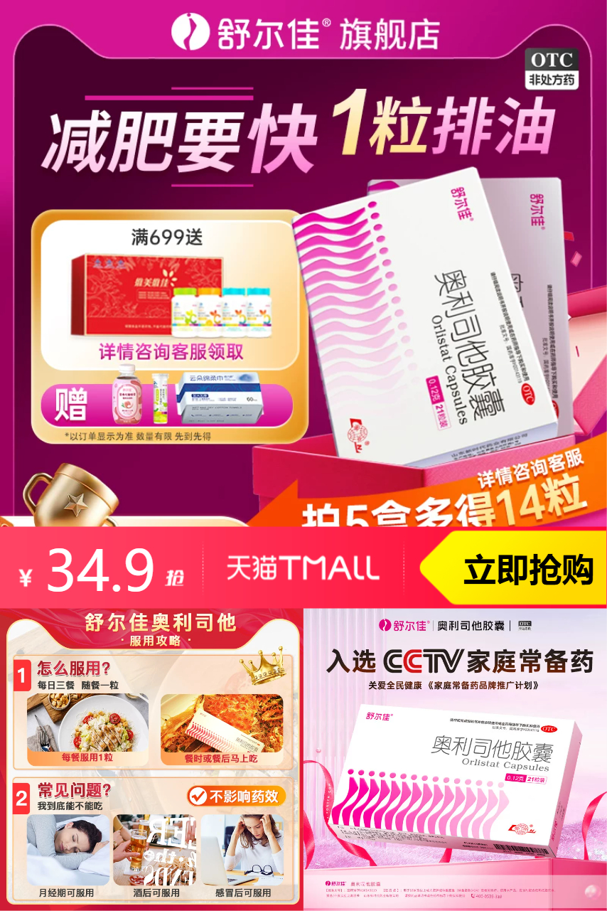 【会员立减0.99+淘金币抵扣0.98到手32.93,折合10.9/盒,1.5/粒】福利来了!舒尔佳奥利司他胶囊,随餐1粒排油减腹,官方直发现货速发,专利品质靠谱,试用装低门槛尝鲜,性价比拉满,想减脂的别错过!
