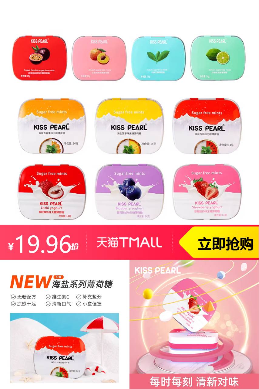 【淘金币可抵扣0.46,到手价19.5】口气急救小能手!不管是吃蒜吃韭菜后,还是口气重,含一颗KISSPEARL薄荷糖,清凉感直达喉咙,快速中和异味,随时随地保持清新状态。