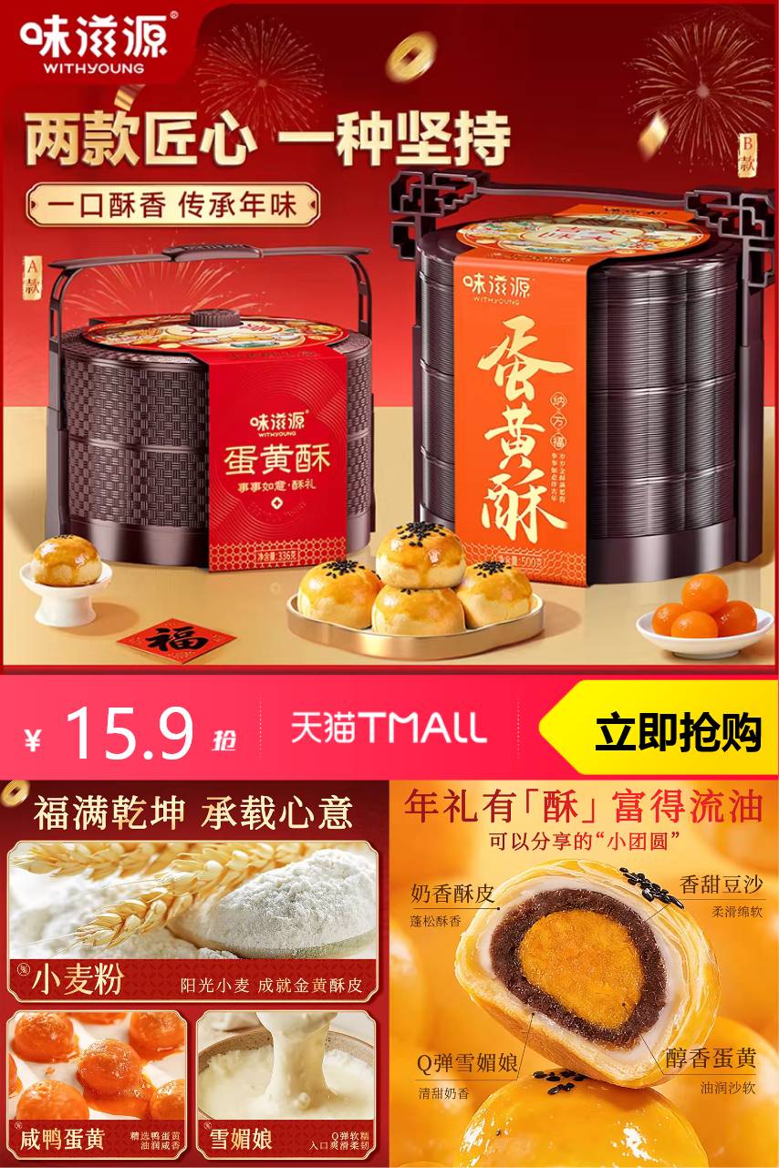 【原价19.9,领券减4,淘金币抵扣0.99,到手仅需14.91】当你轻轻咬下第 一口,酥皮在口中化开,紧接着是浓郁的蛋黄香气与香甜的豆沙交融在一起,形成令人陶醉的味道。每一个瞬间都是味蕾的盛宴。