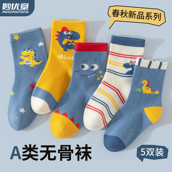 推荐:妙优童春秋儿童中筒袜5双