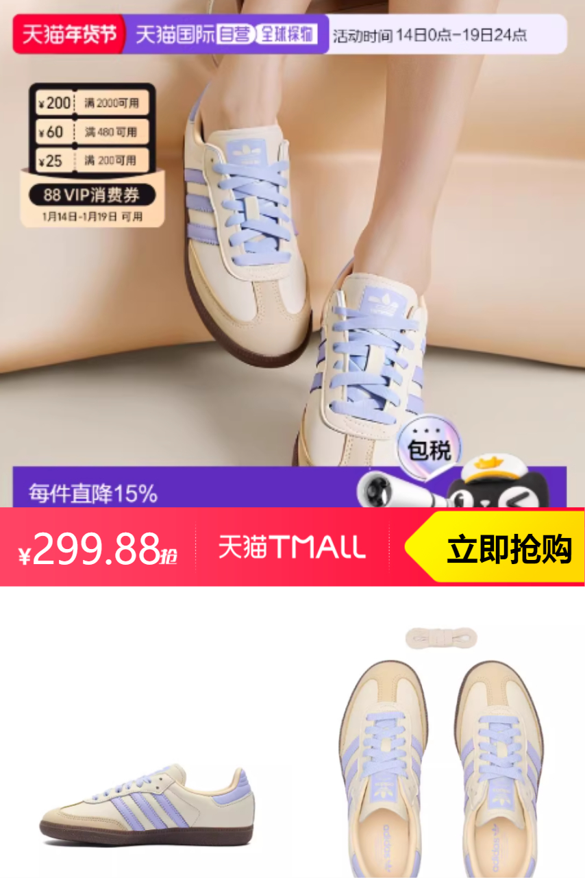 【原价格469-127.35立减-88立减17.08-24.69淘金币到手299.88,凑单消费劵到手263.89】阿迪达斯女款板鞋,舒适德训体验,星黛露风格,潮流必备,时尚与舒适。