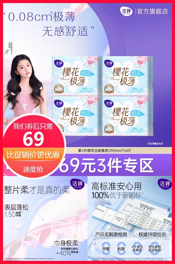 【立减12元,赠:蚕丝日用245mm1片+抑菌裤2条】洁婷第2代樱花极薄卫生巾!专利3D面层,快速分散经血,瞬吸记忆芯,吸得快,吸后也薄。多SKU一个价,任拍3件,服务更贴心!选择更放心!用起来更安心!