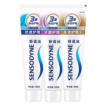 官方立减16,淘金币抵扣1.29,赠多效护理30g*1支,从商品右上角...进淘金币大额抵扣后到手更划算【热销套装,护理组合180g*3支装超值540g】超市一支就要50啦!趁活动多囤!!减少牙菌斑,对抗牙敏感,预防蛀牙,呵护牙龈,清新口气,60秒快速缓解牙齿敏感,坚固牙釉质,贴心守护牙龈健康,温和呵护~