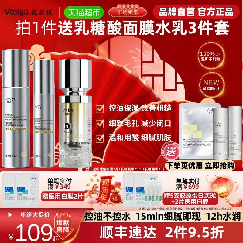 【天猫超市销售】敷尔佳乳糖酸控油敛肤水乳,专为敏感肌肤设计,有效控油、收敛、去痘,适合所有肤质。使用后肌肤更加清爽、细腻,敏感肌也能安心使用。