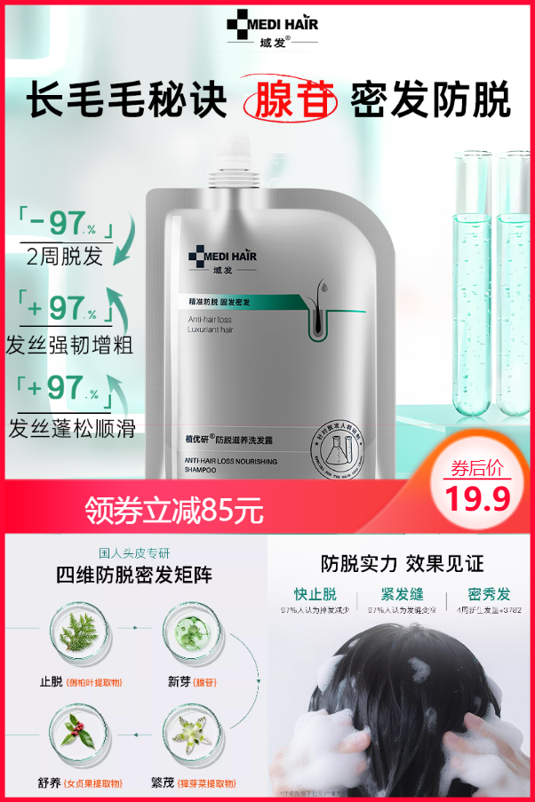 【域发四维防脱】侧柏叶+腺苷,固发养毛囊,掉发减少看得见!植优研科技,守护每一根发丝。